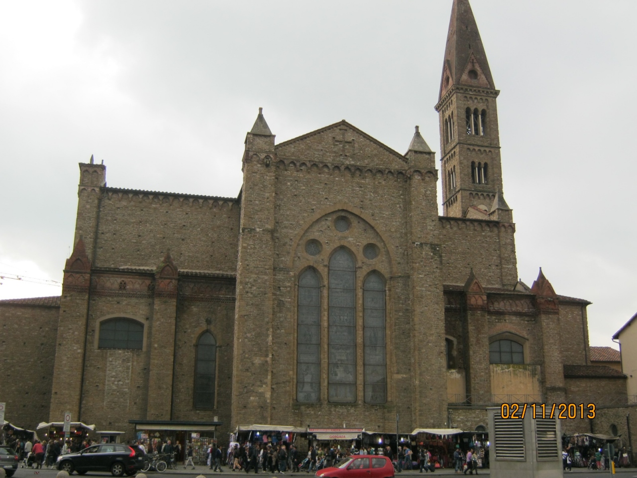 フレンツェ駅前のサンタ・マリア・ノヴェッラ広場に面して建っています。13世紀後半に建設が始まりました。ゴシック様式にフィレンツェの独自の様式を加味した特色ある教会です。内部も見るものが多くあります。隣は観光局があります。