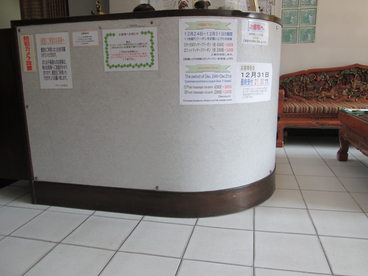 12/23、12/30の2日間に訪問しました。年末・年始の12/31から1/3の4日間はマッサージ師が帰省することから営業時間が短縮されていました。予約なしで訪問すると30分以上待つようでした。タイマッサージ2時間は400バーツで施術前、写真にあるような1階の足洗い場でしっかりと洗ってくれます。