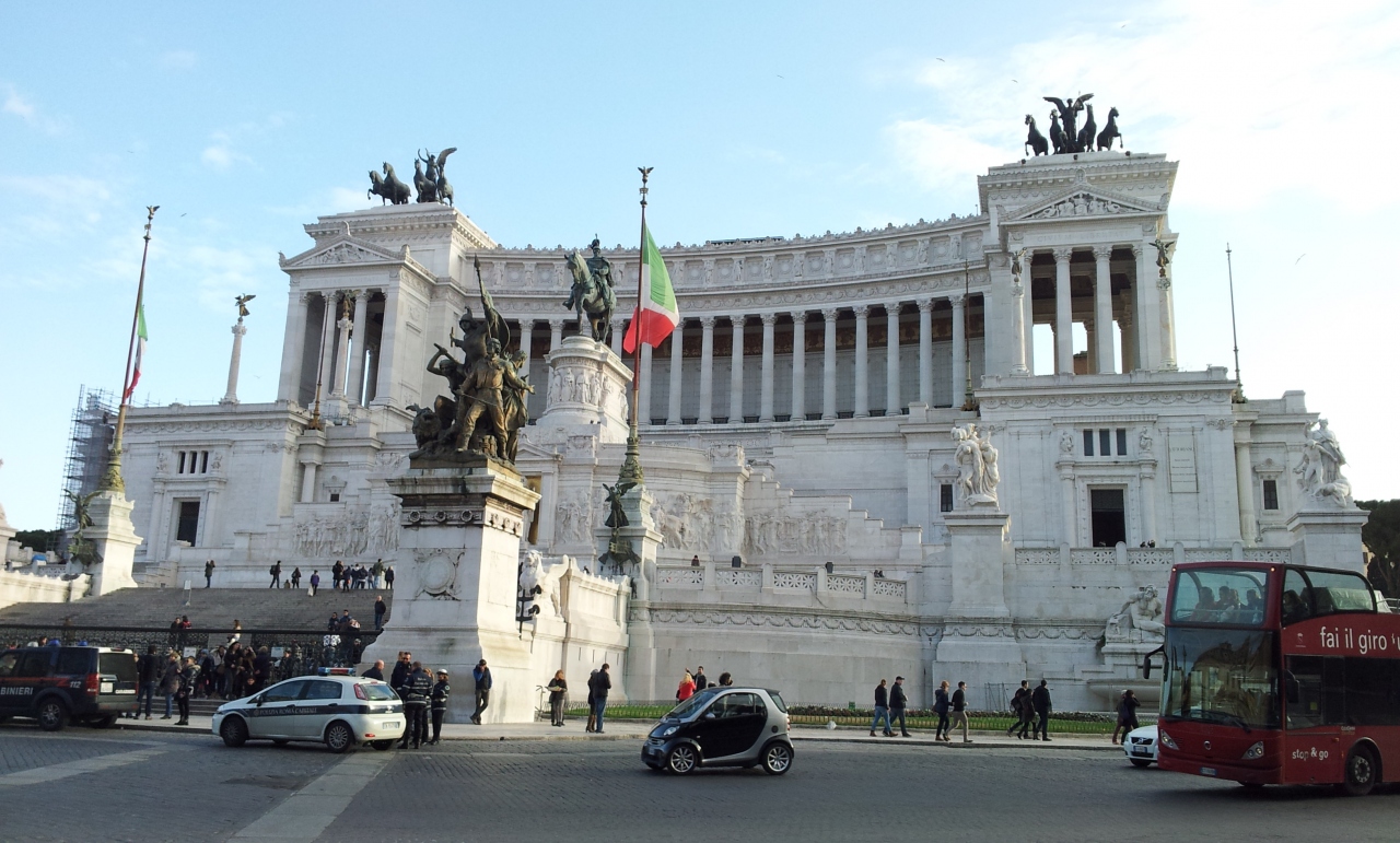 フォロ・ロマーノの近くにある白亜の巨大な建物です。