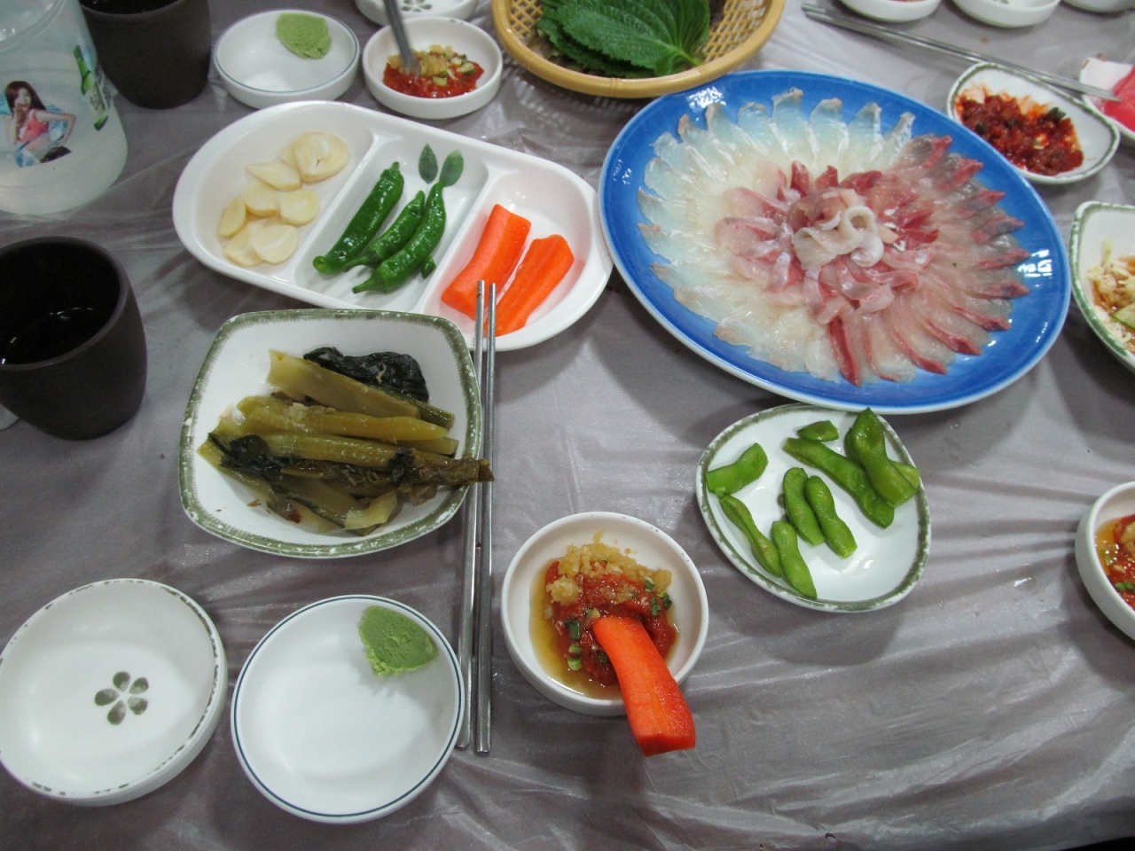 日本語堪能のお兄さんのアドバイスも受けて、お刺身(お任せ)と海鮮鍋を注文。