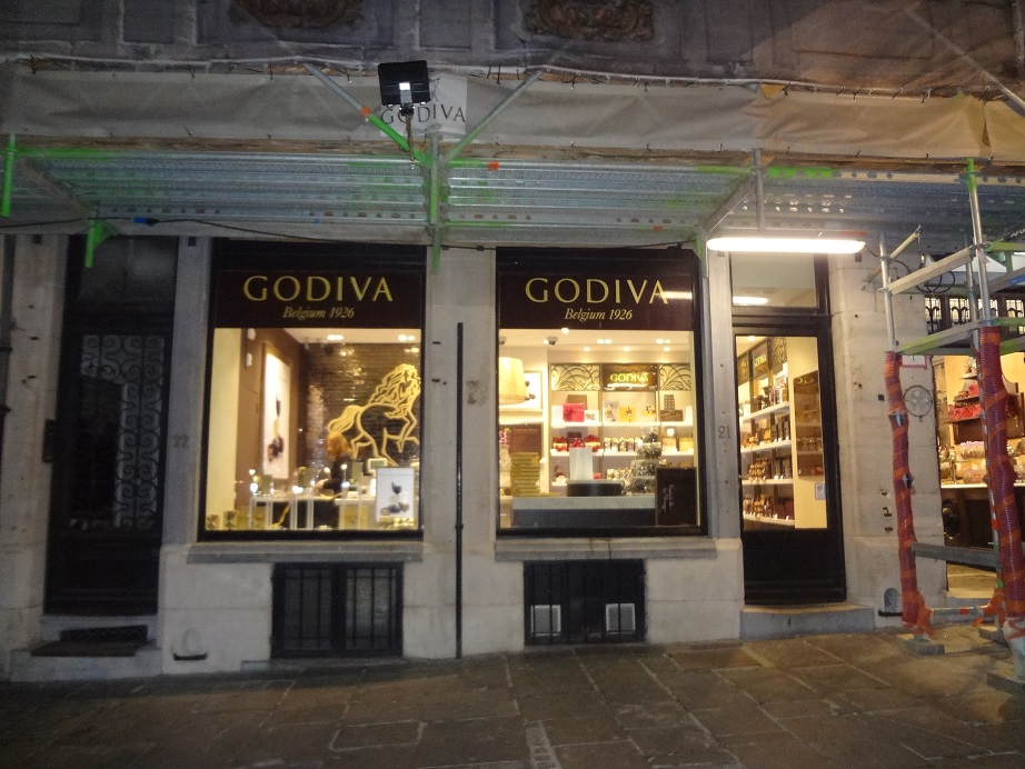 世界遺産グラン・プラスの中にあるゴディバ本店。あのゴディバの本店と聞いて、大きな店舗かと思ったのですが、とてもこじんまりした店舗です。値が張るチョコレートですので、味わってみて下さい。