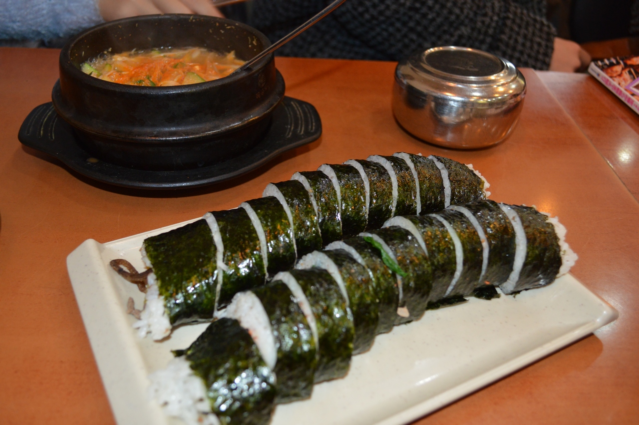 キムチキンパと牛肉キンパと味噌チゲ(ご飯つき)を注文しました。