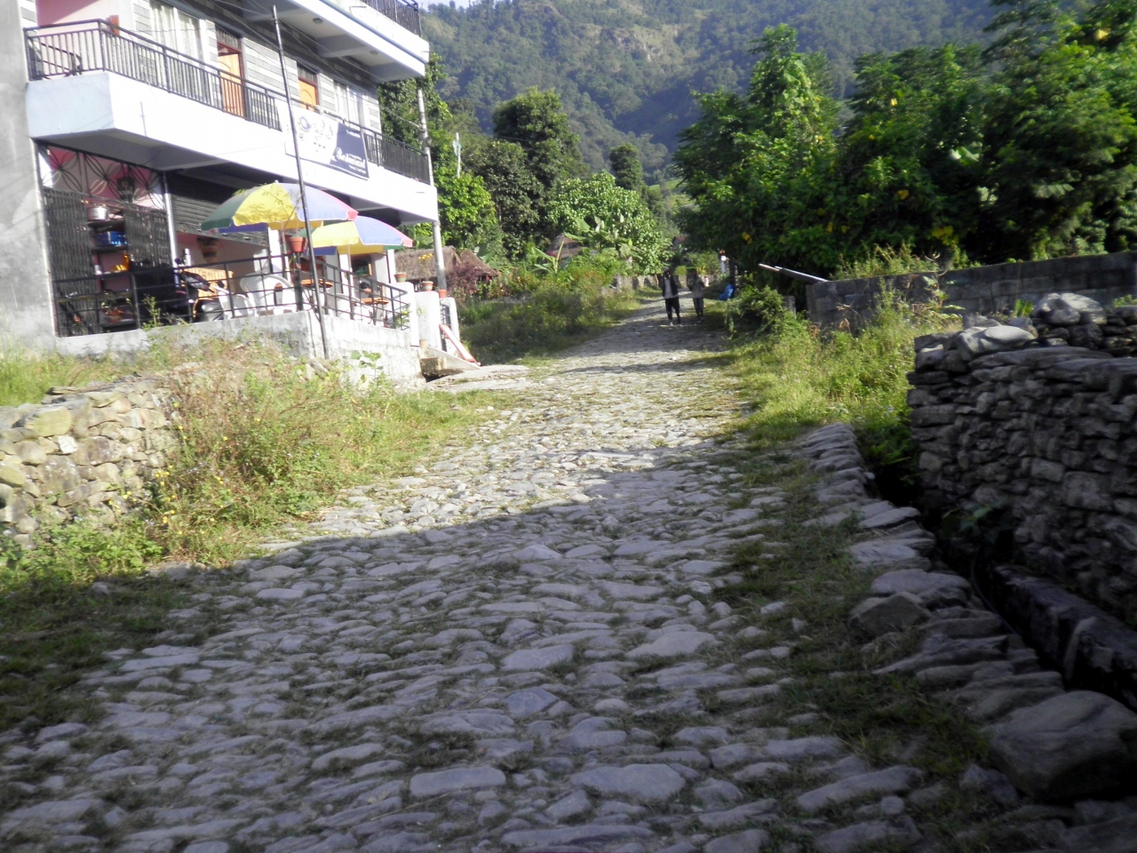 フェワ湖を左に見ながら湖の魅力を味わい、苔むした石畳の入り口から登る。すべて無料でビューポイントへのトレッキングの足慣らしになる。