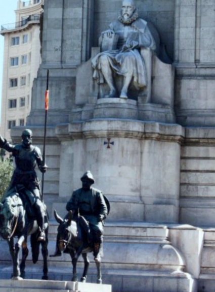 ドンキホーテが居る広場です。観光スポットとして有名らしくて、色々な国の人が広場に集まって写真を撮っていました。色々お店が出ています。中には近頃スペイン各地で良く見かける布を広げた偽ブランド品のお店(警察が来ると畳んで逃げる)もありました。