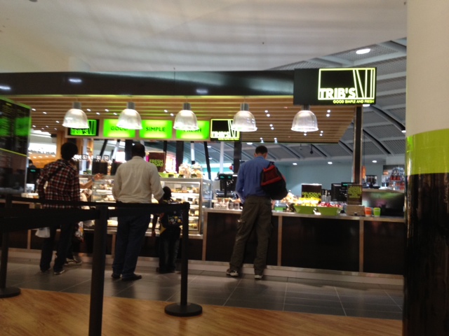 小さいケアンズの空港内、搭乗口近くにある一見フードコートのようなカフェ。