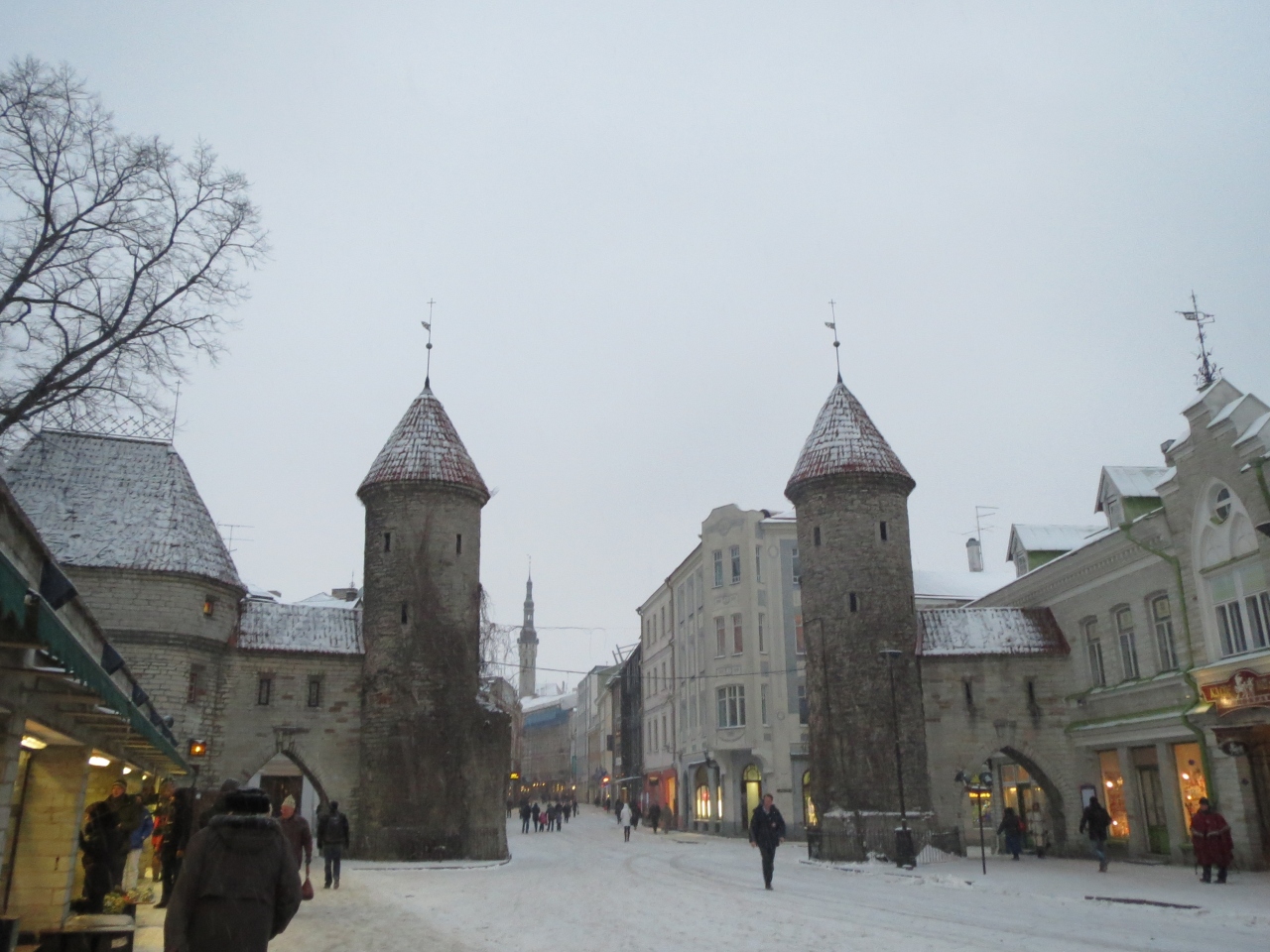 ここはオススメの場所です。この城壁の両脇にはお花屋さんやお土産物屋さんが並び、一歩入ると中世の街並が広がっています。冬に行きましたが、雪が降る街並もまた素敵。城壁沿いにはセーターや帽子、手袋などを売るお店が建ち並んでいます。眺めているだけでも楽しめる場所です。ちなみに私は手袋を買いました。