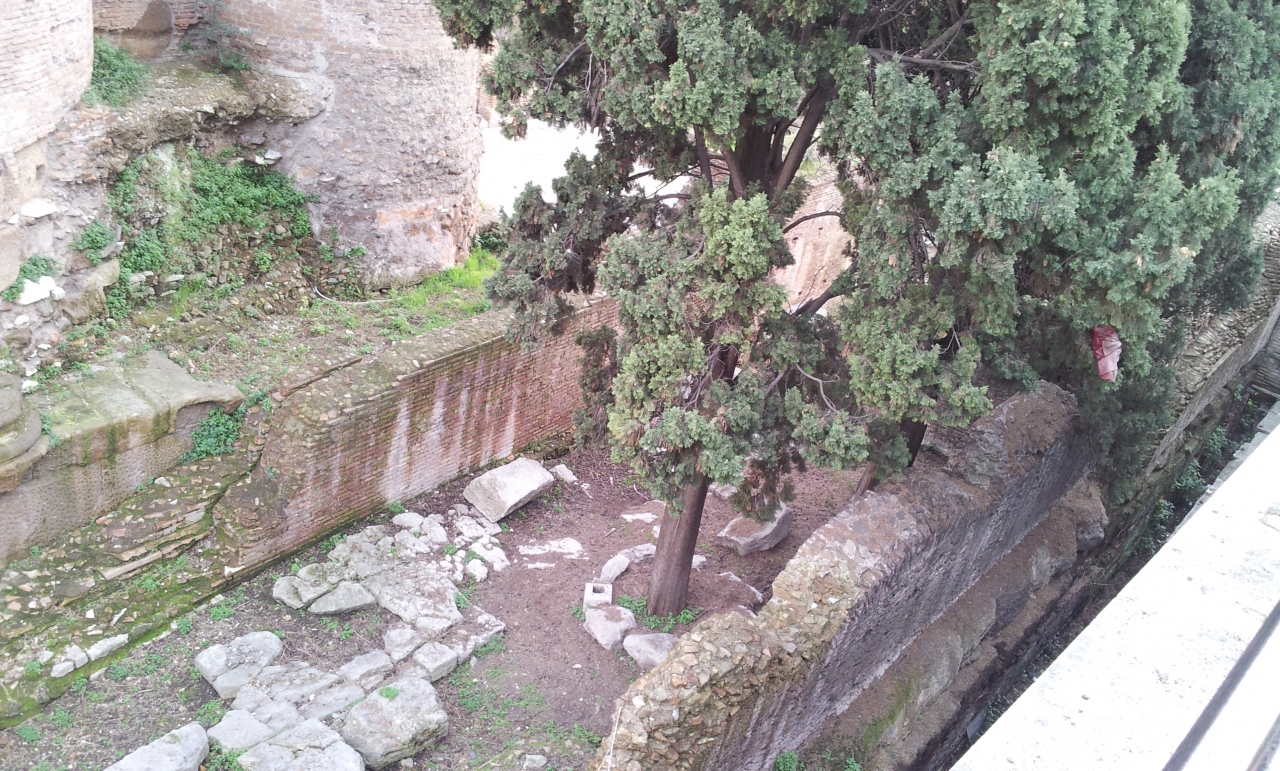 カエサルは元老院の会議が始まる直前、6本の列柱の後ろ付近でブルータスら14名によって刺殺(暗殺)されました。