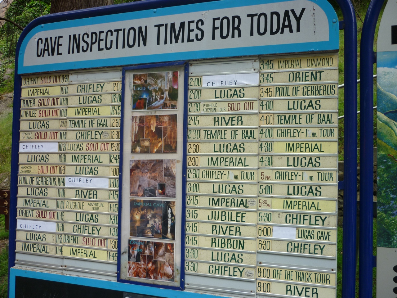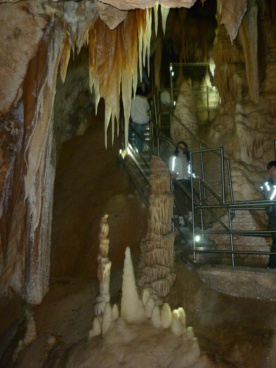 ツァーで行きました。ジェノランケーブにはたくさん鍾乳洞があるのですが、ガイドさんと一緒でないと入れないみたいです。「今日の鍾乳洞探検時間」という掲示板があり、多くの観光客がそれを見て申し込んでいました。我が家が入ったのはオリエントケーブという鍾乳洞で、ペルシャの鍾乳洞、エジプトの鍾乳洞、インドの鍾乳洞などと名前がつけられたところを進んで行きました。こうもりでさえここから奥には行かないということから名前がつけられたバッドエンドというのもありました。足元は歩きやすいように整備されていますが、階段も多いので注意が必要です。洞窟内は年間通して気温15度とのことでした。
