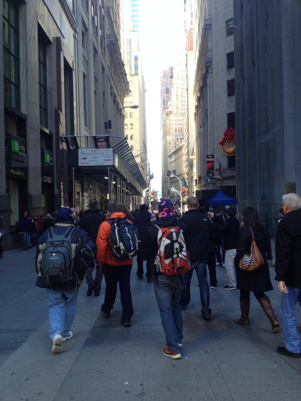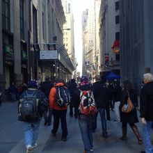 金融に詳しくない人でも知っていると思われる、有名なウォール街です。ニューヨーク証券取引所などがありますが、東京の日本橋のように多くの金融機関が集まっているような雰囲気は感じませんでした。道沿いにはブランドショップなどもあったり、休日だったため雰囲気的には他の通りと変わらない気がしましたが、平日はまた違う雰囲気になるんだろうか・・・と想像しながら歩いていました。距離的にはそんなに長い通りではないので、端から端までは簡単に歩けます。