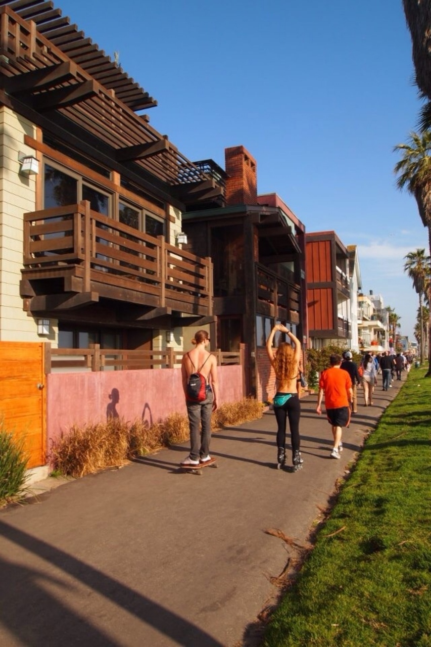 ローラースケートや2人乗りのビーチクルーザー スケボーやサーフィン 大道芸 … ハッピーな気持ちになれる陽気なストリートです。