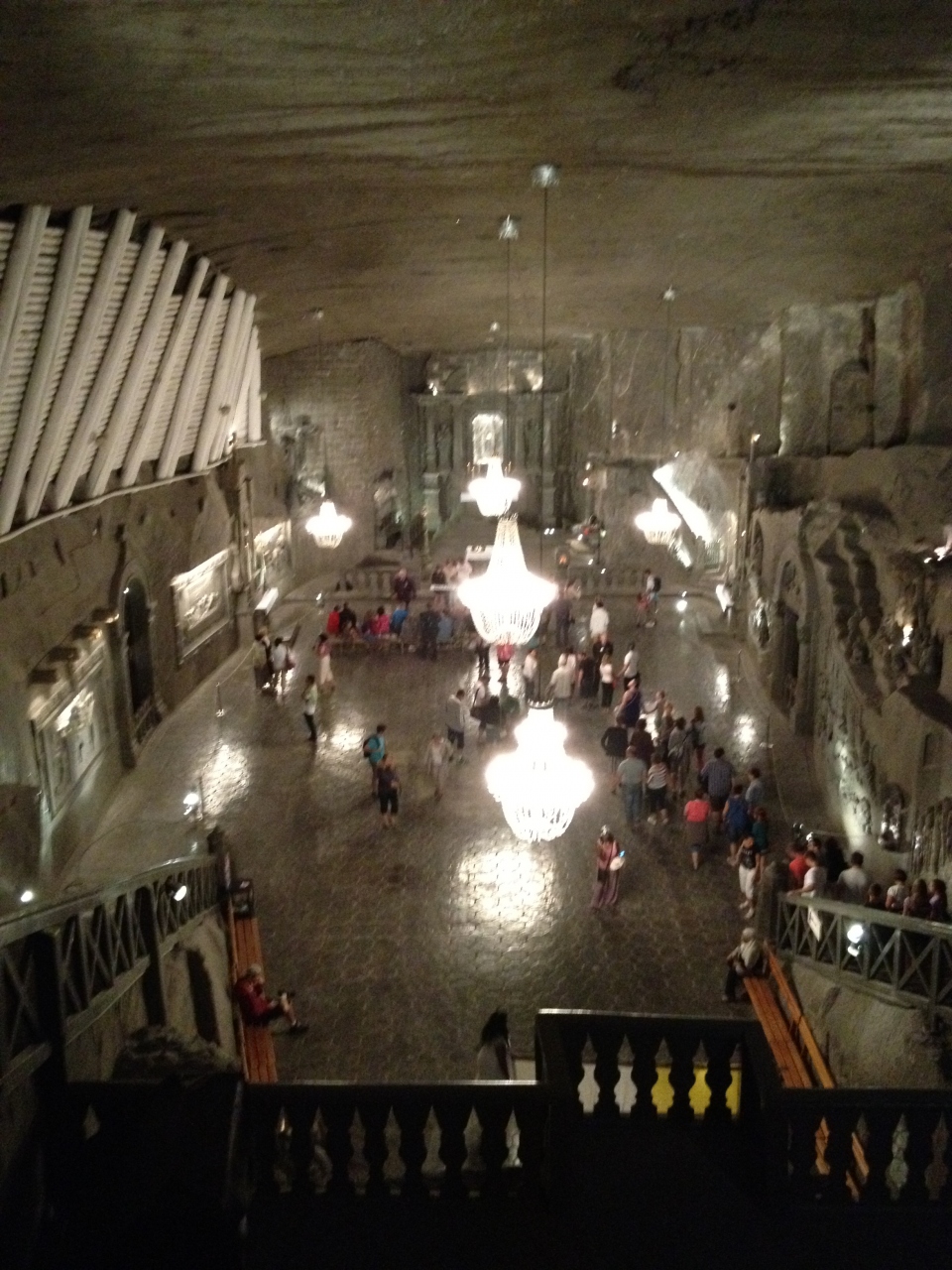 地下の礼拝堂広場は圧巻です。シャンデリアなど全て岩塩でできています。