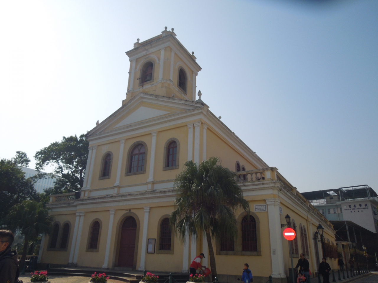 タイパ島の丘にあるクリームイエローに白の縁取りの美しい教会でした。