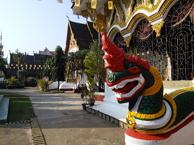 大きくて立派なお寺ですが装飾の龍の塗装が素人の手塗りっぽかったり、色使いも原色的でなんともかわいらしい感じがします。