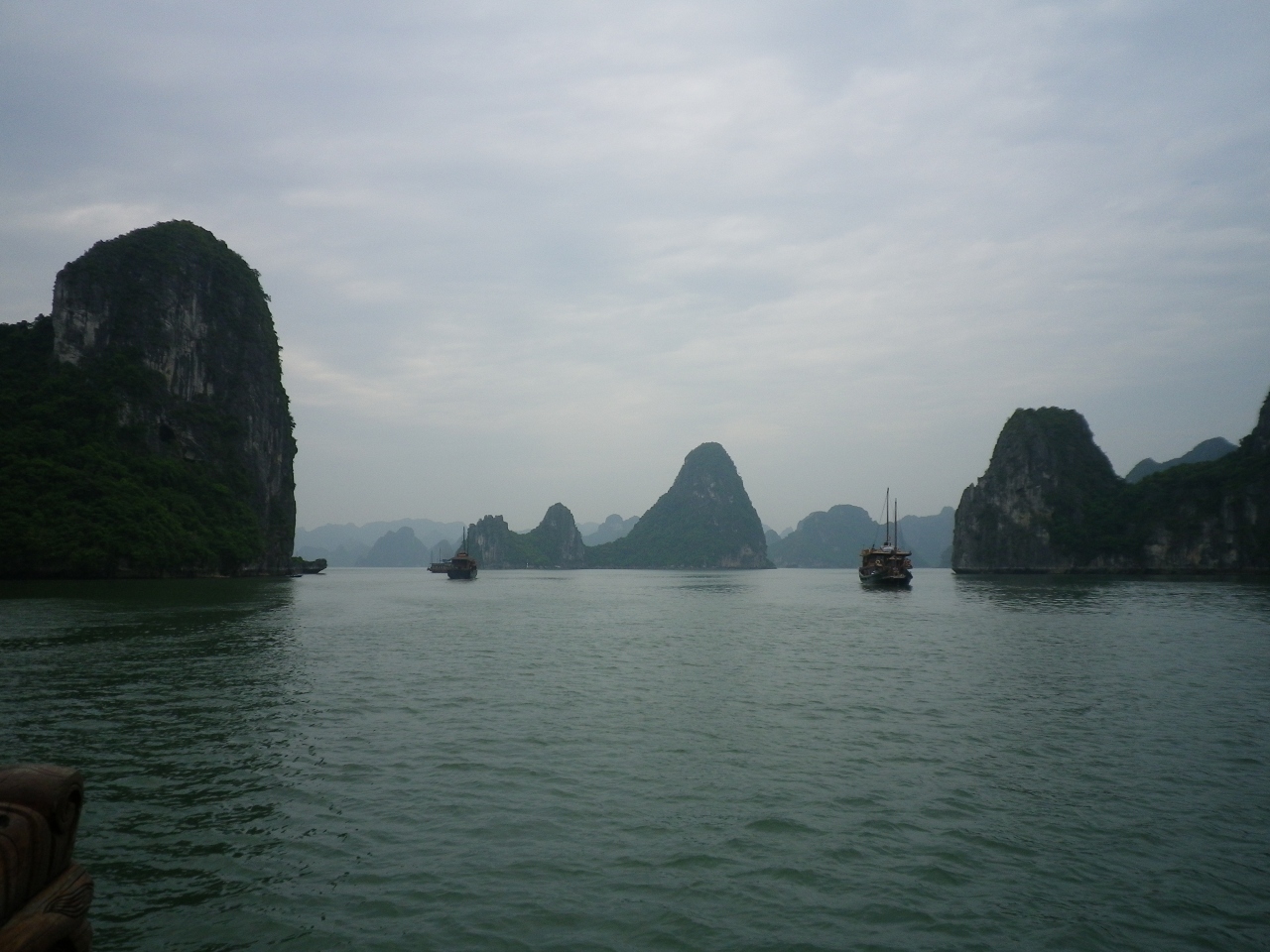 ベトナムのハロン湾ですが、いろいろな形の島やら岩やらが楽しめます。また、クルーズの途中で水上生活をしている集落に寄って彼らが採った魚や貝などを購入することができます。多くのクルーズ船は厨房を備えているのでその場で調理してもらえるようです。自分は衛生面を気にして食べませんでしたが。ハロン湾の真ん中あたりには鍾乳洞も楽しめます。