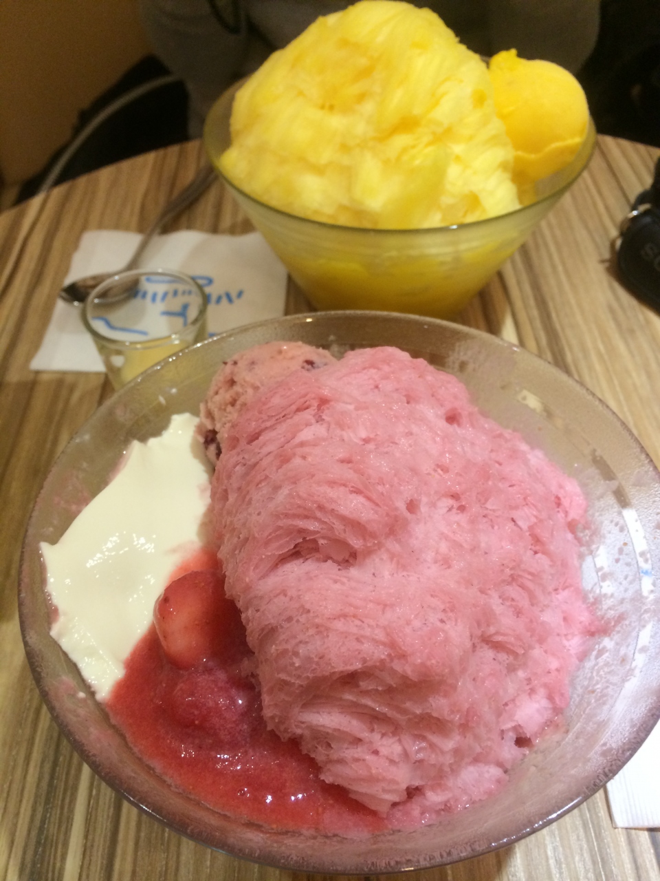 アイスモンスターでかき氷を食べました。まず日本のかき氷と全然違うのに驚かされます。いちごとマンゴーの2つを頼みましたが氷が水ではなく果実のシャーベット氷です。(最後まで薄くならず美味しく食べれます!!)