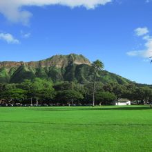 カピオラニパークからはダイヤモンドヘッドの美しく雄大な姿を余すところなく眺めることができます。近くからダイヤモンドヘッドの眺めを堪能するならカピオラニパークが最高だと思います。