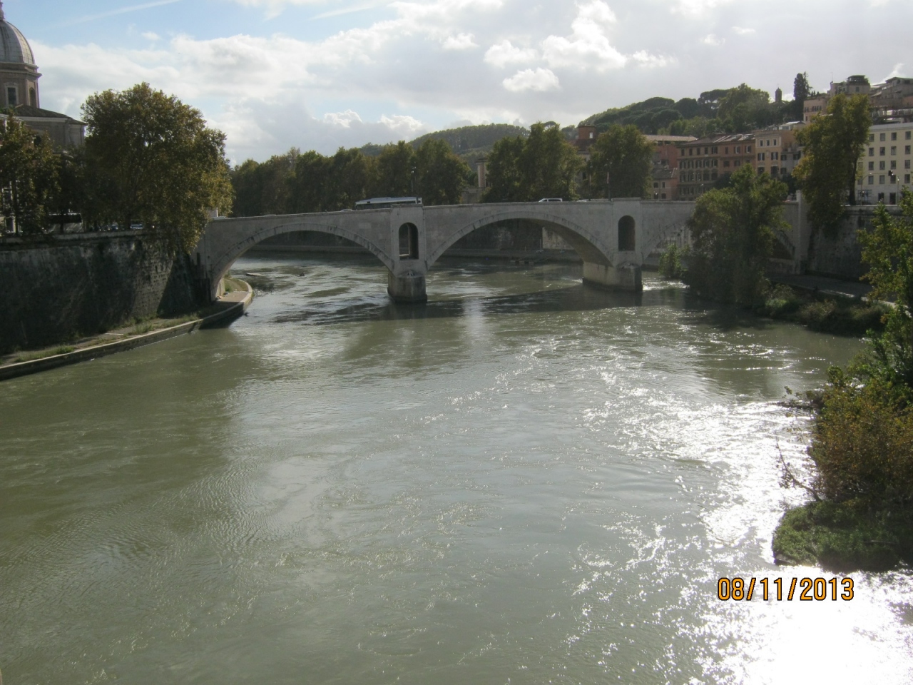 旧ローマの西の境になります。現在は川の西側はヴァチカン市国とその城壁があります。この川で旧ローマ市の北側にはポポロ門と広場があります。南はカラカラ大浴場があります。その間にサンタンジェロ橋やエマヌエーレ2世橋などがあります。