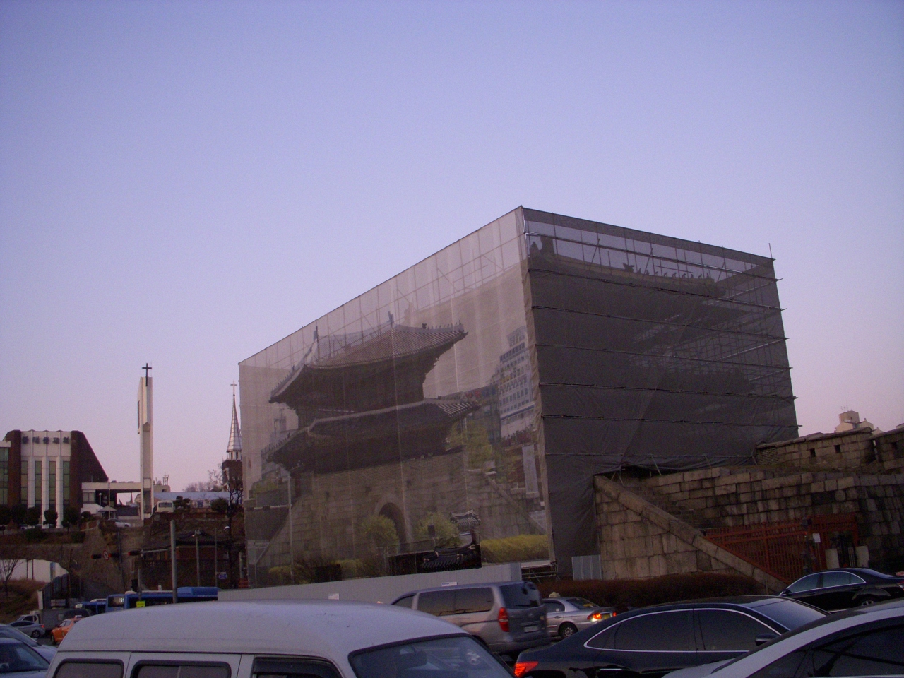 まだ火災で焼失した建物の再建途中で入場はできない状態でしたね。交差点よりはなれて鑑賞するのが精いっぱいといったかんじでした。ソウルの象徴となっていまして、地下鉄移動では意外に中心部からちょっと離れていたと思います。次回立ち寄った際には、中の見学をしてみたいです。