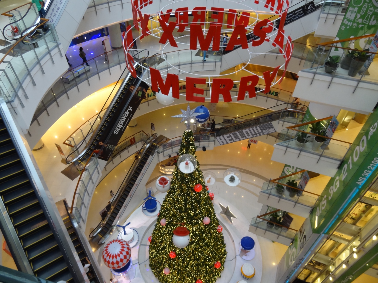 2010年のデモ鎮圧の混乱時に放火されて、大きな被害を受けましたが、そんな悲しい過去は全く感じさせない程に再建されてバンコクを代表するショッピングモールとして賑わっています。BTSチットロム駅で降りてサイアム駅の方向に高架の歩道を5分ほど歩くと高架からそのまま店内に入れます。あまりにも広いので事前にネットや雑誌で目的の店舗を決めてから行かないと、やみくもに歩き回ると疲れます。