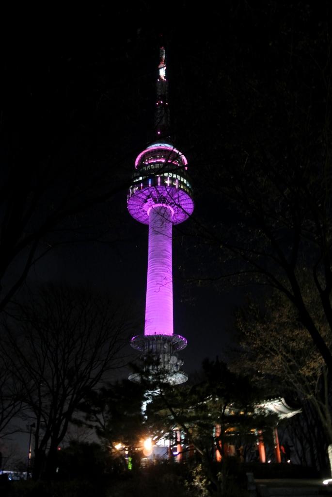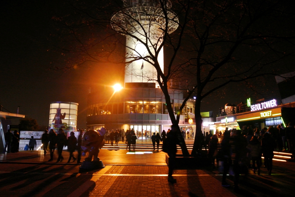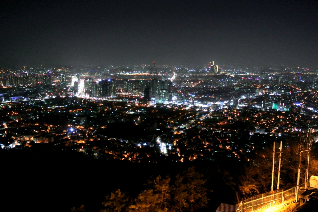 やっとのことで上に着きました。ソウル市内の夜景が一望できます。
