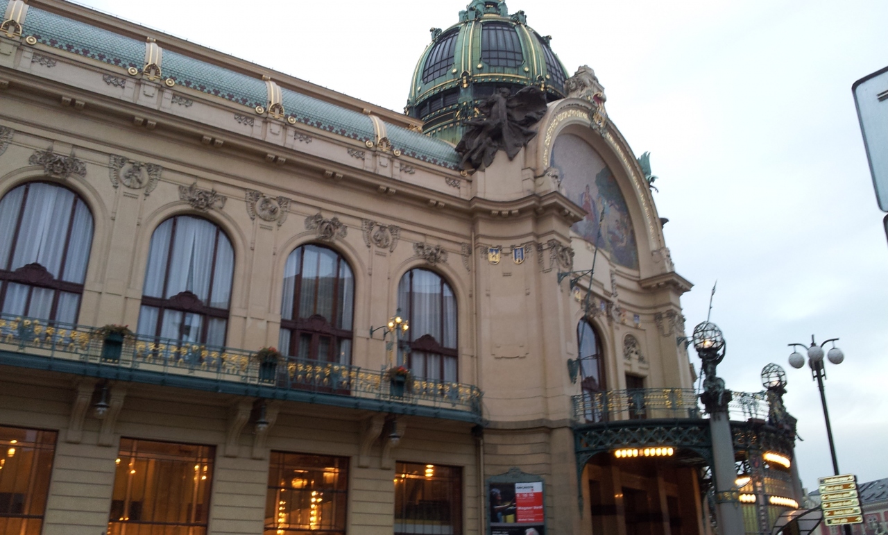 1911年に火薬塔の前に建てられた豪華な文化施設、市民会館の中にあります。