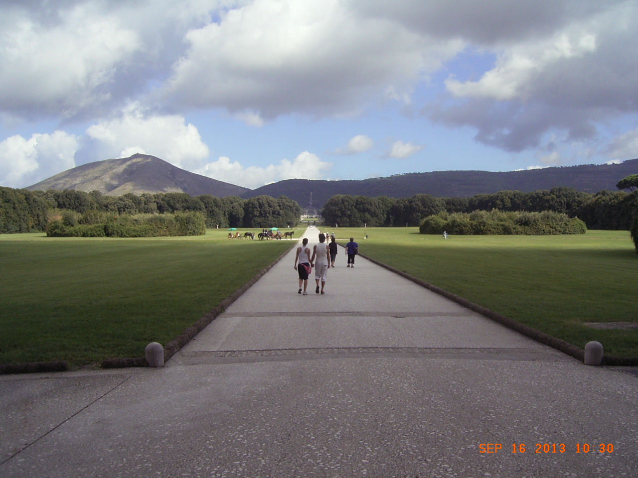 ガセルタ駅の前にあります。駅から王宮の建物が見れます。その建物の奥に広大な庭園が広がっています。この地をフランスのブルボン家が支配していた時代に造られました。王宮は豪華絢爛です。庭園も滝などを配置した魅力的なものです。