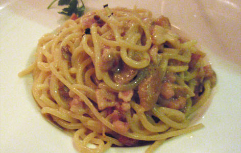 前菜にブルスケッタ、パスタはカルボナーラ、デザートはティラミスを選びました。