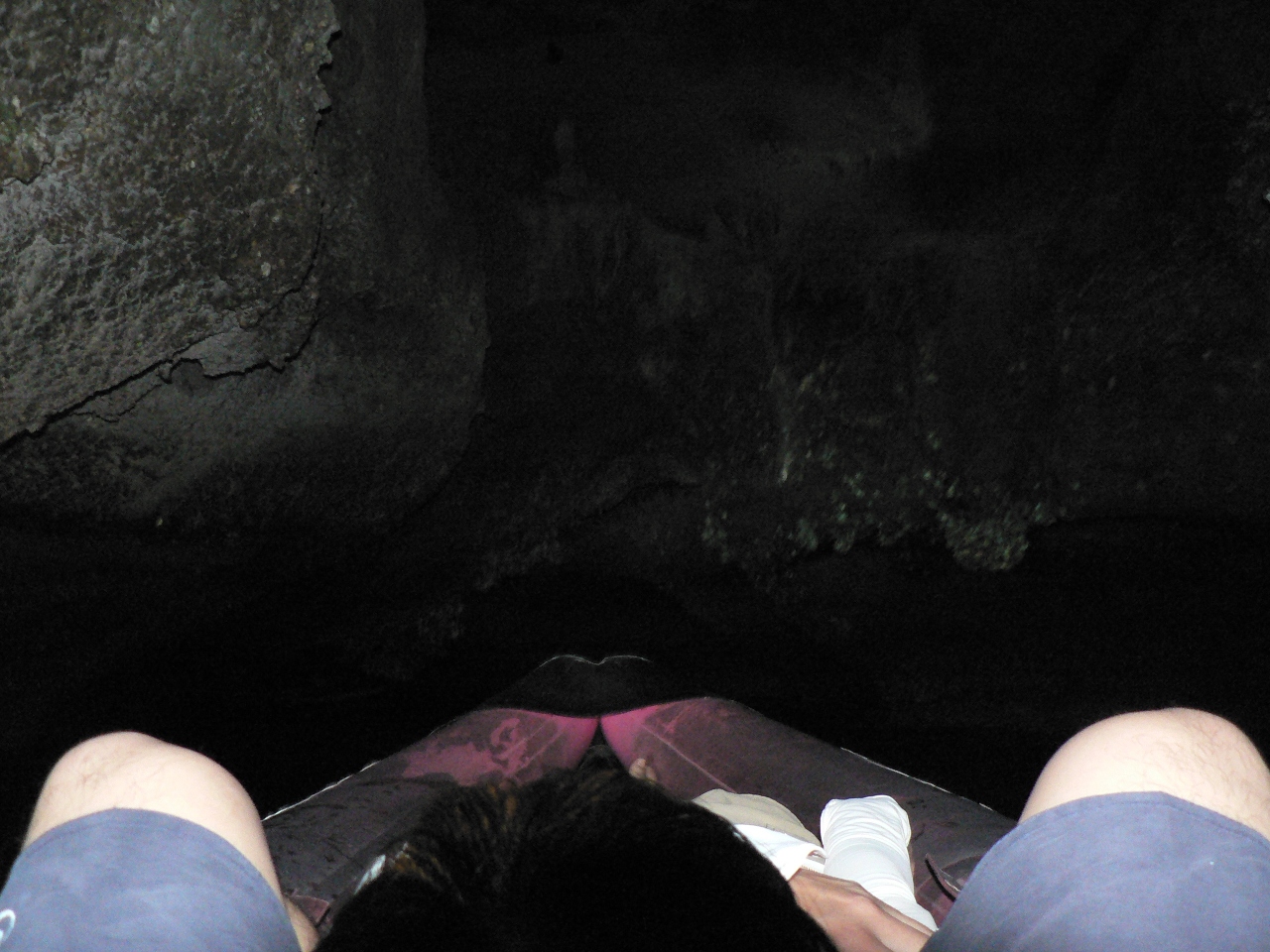 カヌーに乗って岩と海面の間の隙間へ侵入すると...