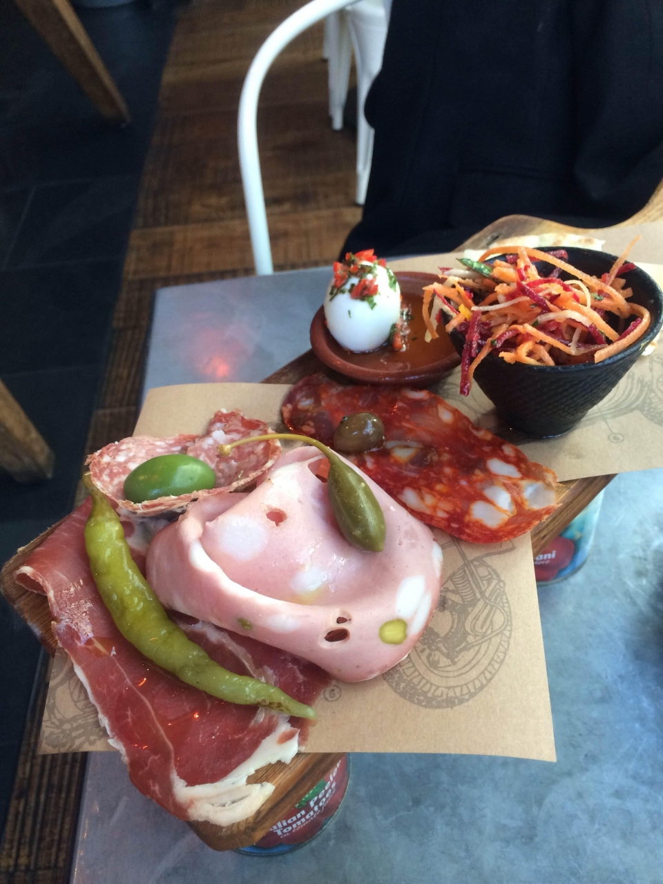 レモネード・前菜(お肉の盛り合わせ)・カルボナーラのパスタ・ティラミス・エスプレッソを注文しました。味はそれなりに美味しいですが値段が高めです。4500円くらいでした。店内にはジェイミーのグッズも売ってました。