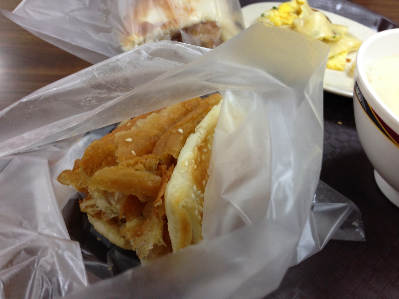 豆乳は、甘いのとしょっぱいのがありますが、甘いやつ(甜豆漿)は砂糖が加えてあって牛乳みたいに飲むもの。しょっぱいの(鹹豆漿)は、にがりが加えてあって半分おぼろ豆腐っぽくなっててネギやら油條などの具が入って、味噌汁みたいに食べます。