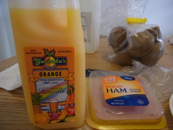 ハーブの入ったソーセージや、ハム、ゴヴィンダのオレンジジュースが絶品です。