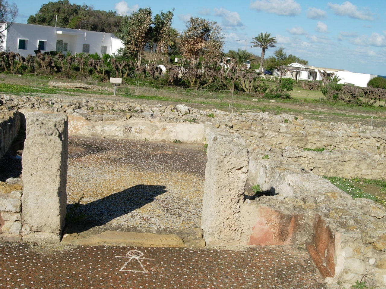 ローマ時代よりもっと前。修復なし。まんまだから感激もの。地中海に飛び込めるロケーション。まだモザイクの技術が発達する前のモザイク。貝殻で床が装飾してあるのは驚き。予想外に良くて嬉しかった。お風呂場も必見