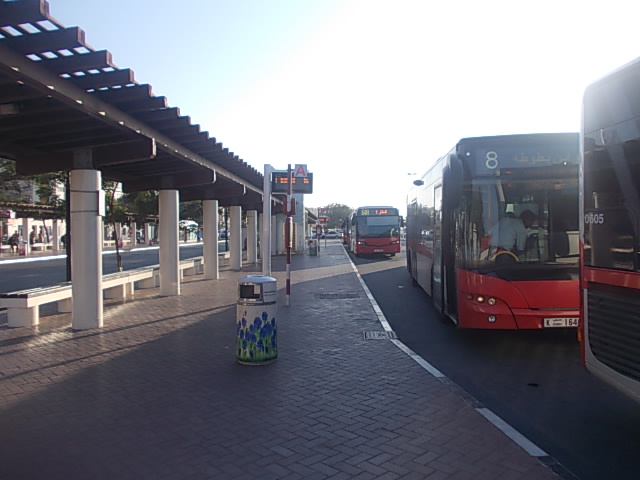 ドバイ市街地のバスステーションの中でも、ここはちょっと立地的には不便に感じる要素がありましたが、各路線が番号別に分かりやすく乗り場が並んでいて、目的地へのバス路線を見つけるのには一番探しやすいバスステーションのように感じました。