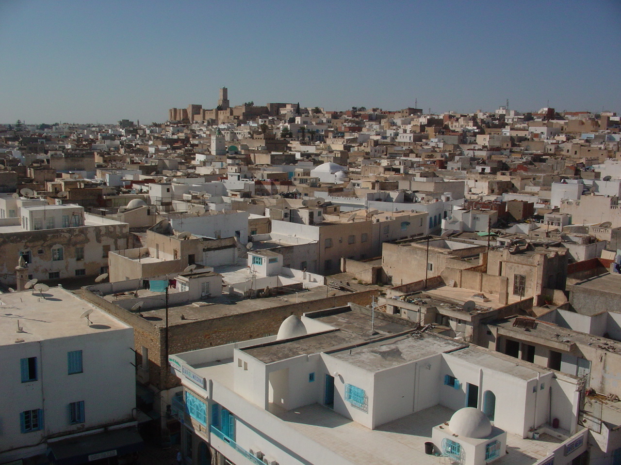 晴れた日は、レンガ屋根や白い壁、チュニジアンブルーが密集している世界遺産スースの町を見下ろせる、ナイスビューポイント!おすすめです。