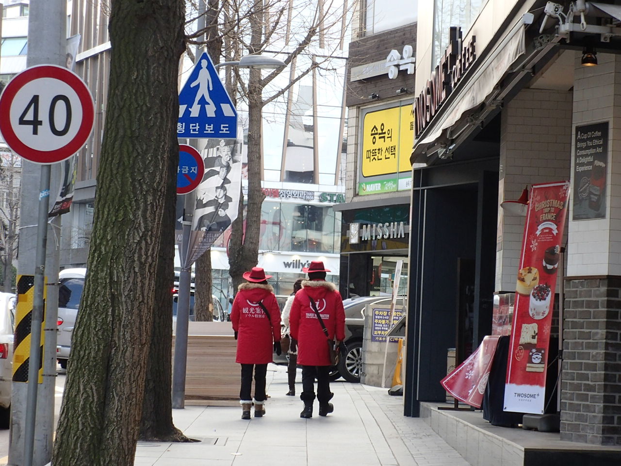 カロスキルとは街路樹通りという意味だそうですが、真冬なので街路樹の葉はすべて落ち枝だけに…。