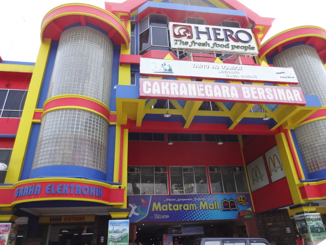 スンギギ(Senggigi)から、ベモを乗り継いで行ってみました。所要時間30~40分程度、金額は5,000ルピーを2回払い、計10,000ルピー(約100円)でした。ショッピングセンター地上階に、わりと大きめのスーパーが入っており、お配り土産はここで調達しました。スンギギ界隈では、食べ物系のお土産を売っているお店が少ないので、このスーパーで、小分けになったコーヒーや、調味料、お菓子などを買って、お土産用としました。ショッピングセンター内には、KFCなども入っているので、地元料理に飽きたらこういうところで一休みするのもいいかもしれません。