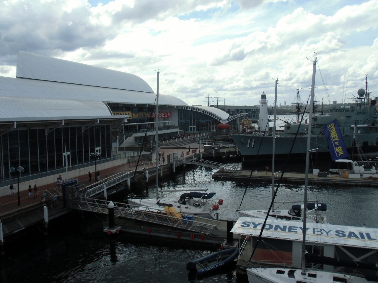 ダーリングハーバーにかかるピアモント橋から、周囲一帯が見渡せます。ダーリングハーバーのシティ側にはシーライフ・シドニー水族館やコックル・ベイワーフ、ピアモント橋を渡った先にはオーストラリア海事博物館やハーバーサイド・ショッピングセンターがあり、どこもたくさんに人で賑わっていました。ピアモント橋上には、モノレールも走っています。ダーリングハーバー周辺には、シーフードなどいろんなお店があるので、食事に行くなら、このあたりがお勧めです。