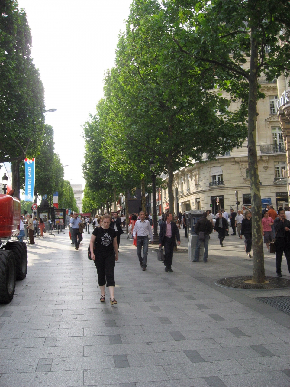 西の方では、両側には有名ブランド店、映画館、キャバレー「リド」、カフェ「フーケ (Fouquet's)」、レストランなどが立ち並ぶ。