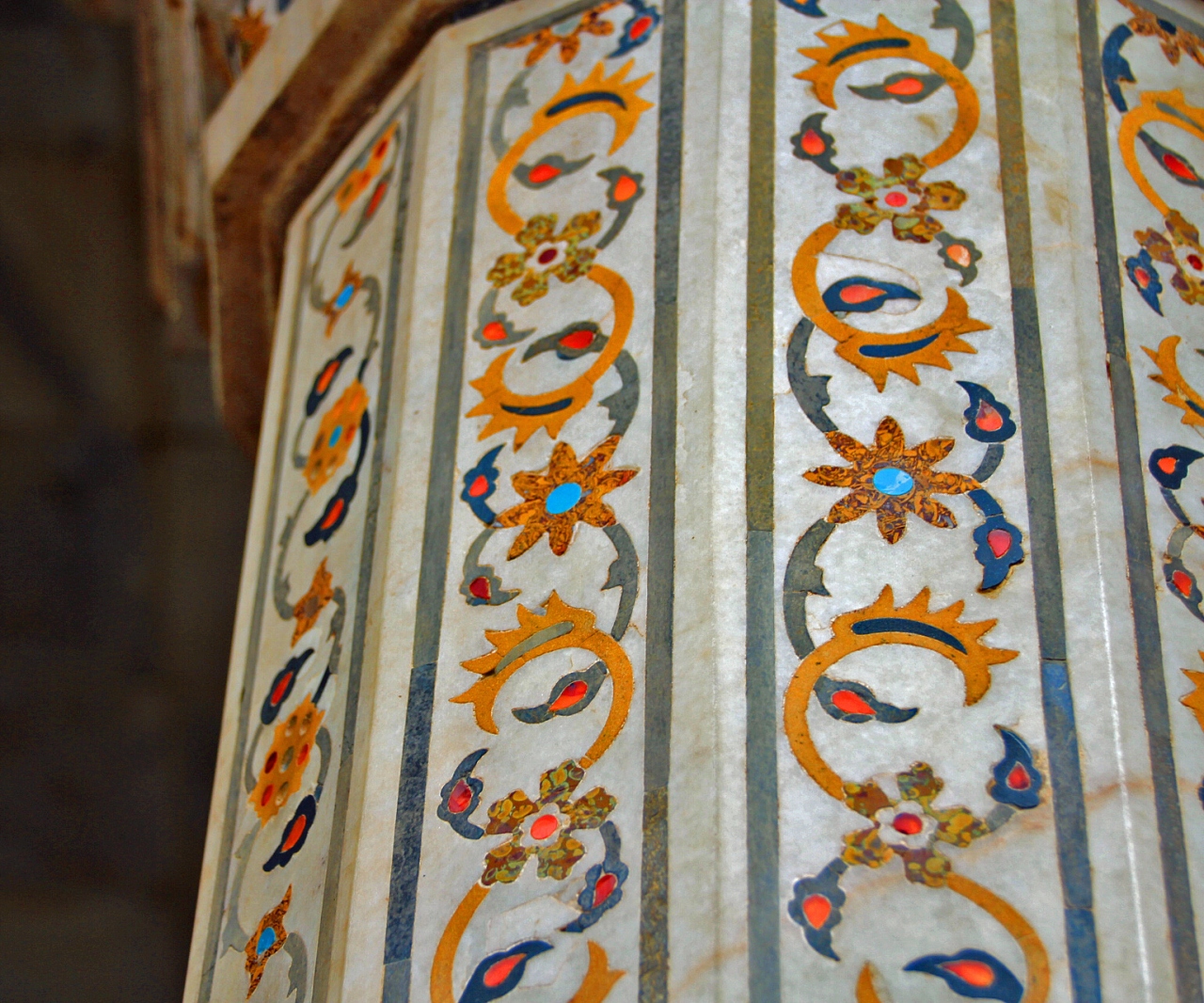 内部の見どころとしては、タージマハルと同じ技術で造られたという王宮の象嵌細工で、タージマハルでは混雑しすぎてじっくり見れませんでしたが、こちらでは近くまで寄ってみることができます。