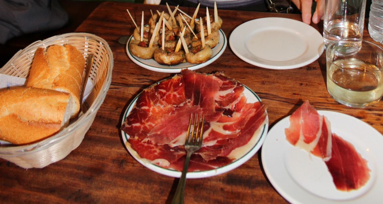 マヨール広場の裏側の路地にたくさんのバルが軒を並べている横町にある。