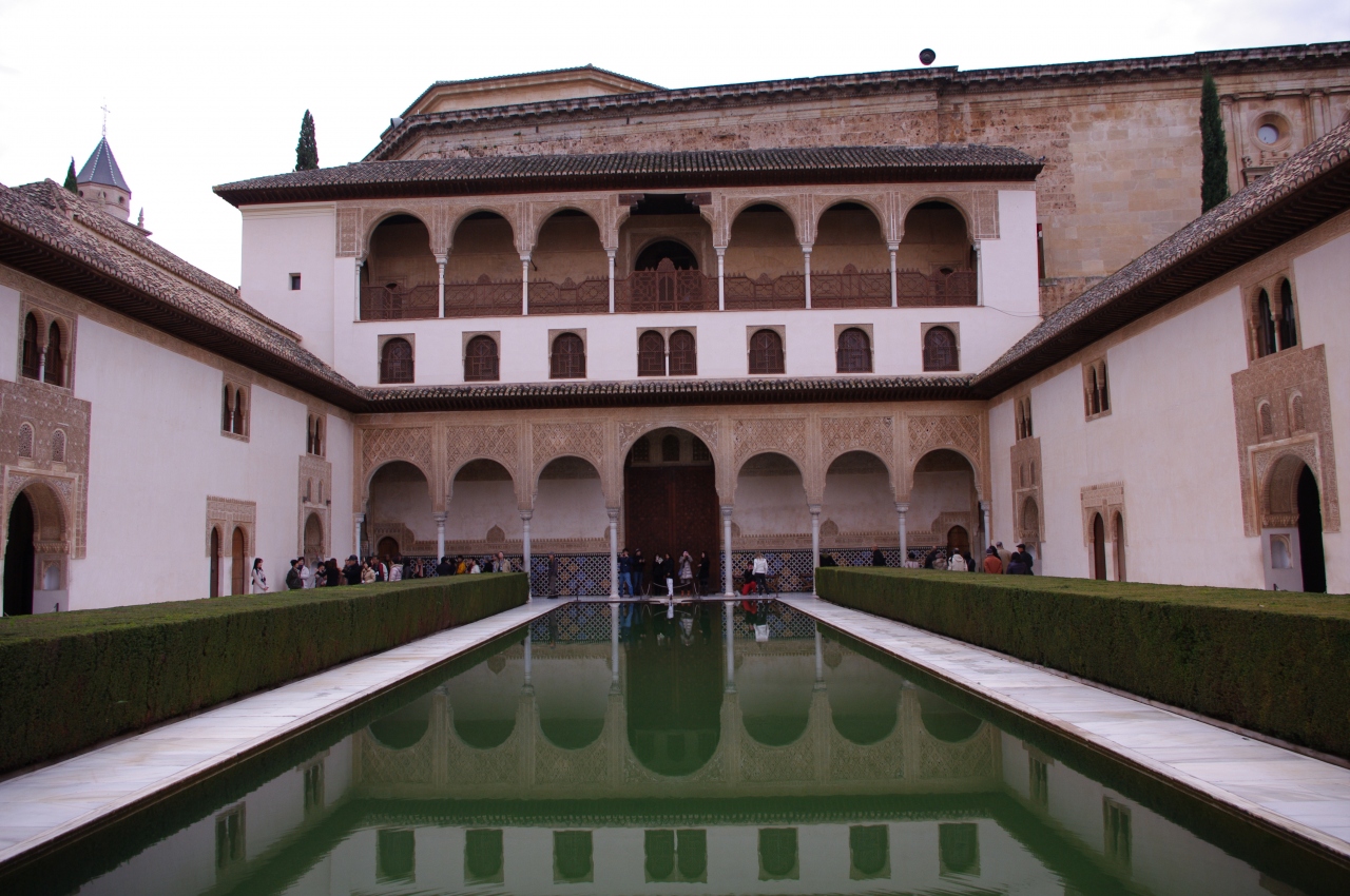 34番バスに乗り入口へ。(1.2€)入口付近の地下に手荷物預け所があり、預けるのだが、X線検査をされる。そこから15分くらい歩いた所が予約制のナスル朝宮殿であり、予約の8:30に対して、到着したのは、9:00だったが、何事も無く入場できた。