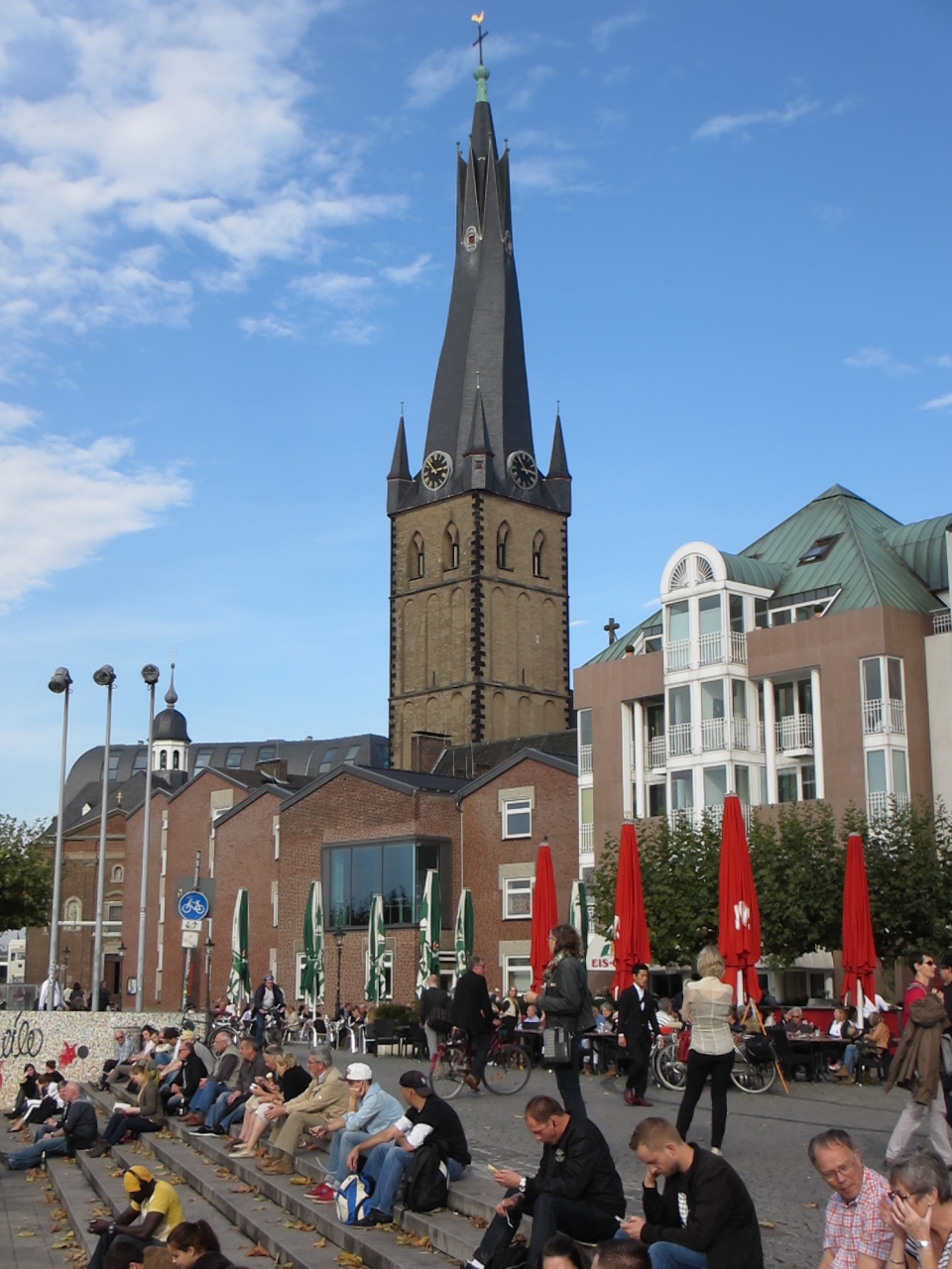 デュッセルドルフのメジャーな観光スポットと言えるこの場所を是非見たいと思いホテルから電車を使って行きました。沢山の観光客がいますのでメイン通りはこんでいますが、ちょっと小路に入ると人ごみも少なく古きドイツの街の雰囲気を楽しむことができます。