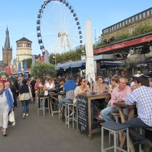 ライン川に面した所にはオープンテラスがたくさんあり、ビールや食事を楽しむことができます。