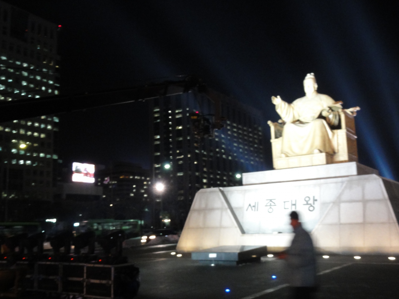 ここからさらに、チョンノ方面にあるいたのですが、大晦日なので、世宗大王の像にテレビの照明が照らしてあったり、普信閣のまわりには人がいーっぱい!!盛り上がっていました。ただ、立ち止まることができなかったので、ホテルに帰り、カウントダウンの様子は、テレビでみましたが。。