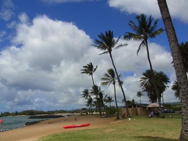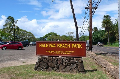 ハレイワの町を抜けたあたりに位置する大きなビーチパークです。