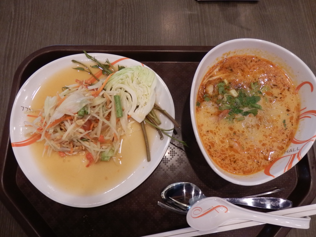 結果、パパイヤサラダとトムヤムクンヌードルを注文。
