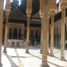 この中庭は、暑い夏のスペインでも、オアシスを感じる素敵な庭になっています。回りにいくつかの間があり、その中心部に位置しています。外の外壁からは、想像つかない、白い明るい中庭。とても優雅な雰囲気を味わうことができる場所です。