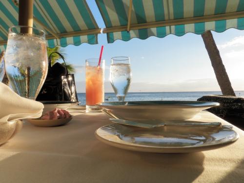 海辺のレストランなので、窓際の席を予約すると尚良いです。この日は、ワイキキのパレードのせいで車が動かず(レンタカーで行きました)、予約時間を30分過ぎてしまいましたが、途中で1本電話を入れたため、窓側の席は確保しておいて頂けました。
