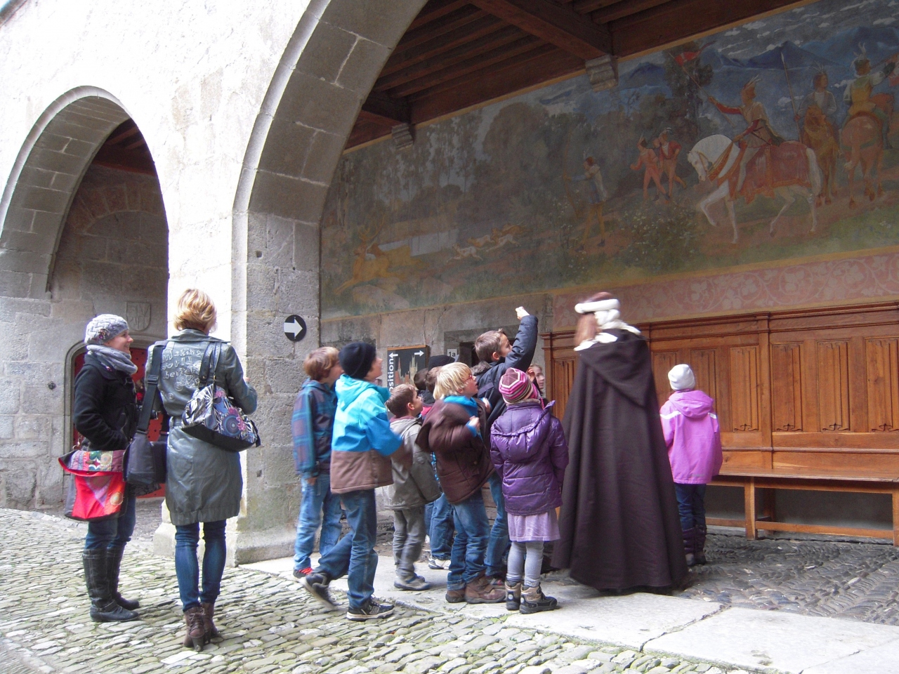 グリュイエール城の築城は1270年~1282年。城郭構造は「Carre savoyard 式」と呼ばれ、当時よく見られた形式。