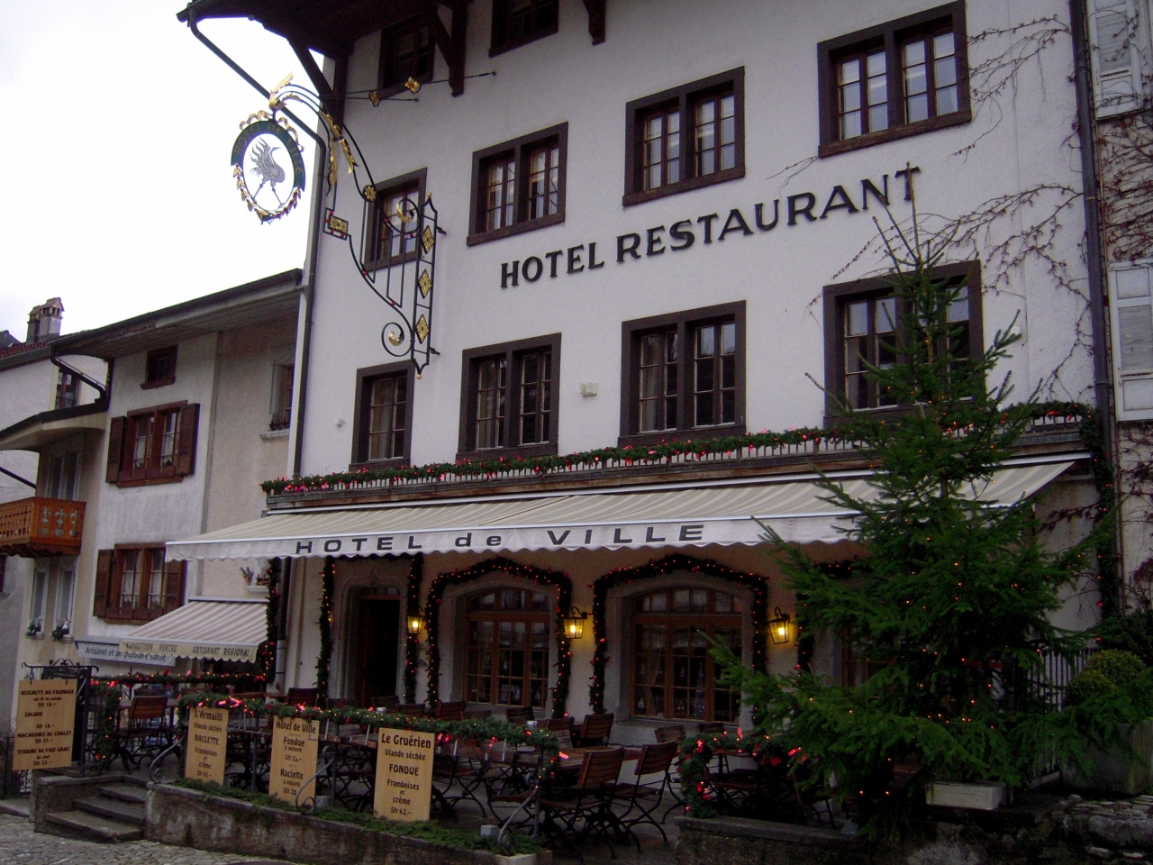 ゆっくりとお城を見学した後は、お城から下ってきたところにある「グリュイエールチーズ」の工場を見学し、併設のレストランでお昼オニオンスープ、チーズとハムの盛り合わせなどを戴きました。